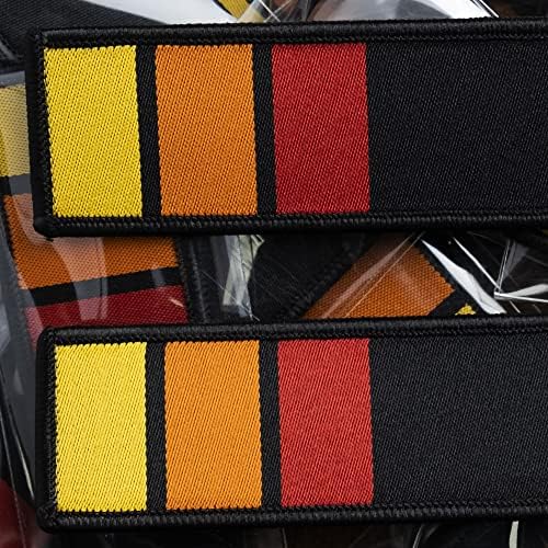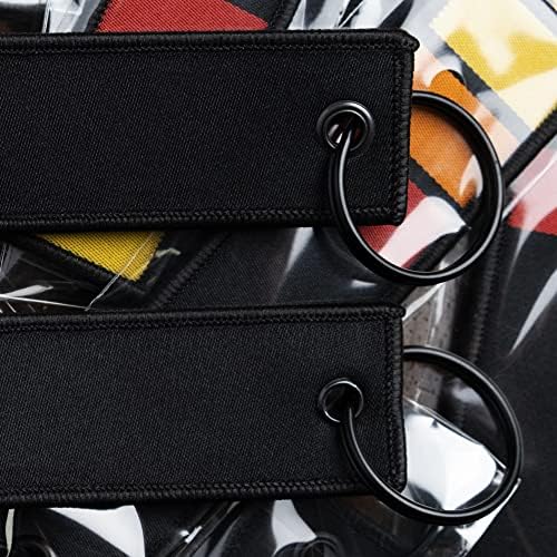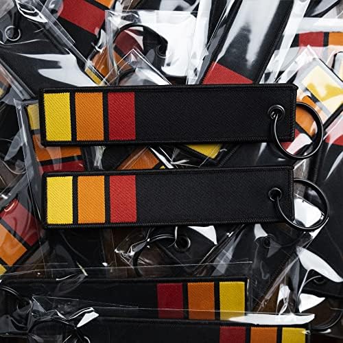 (2-PACK) Classic Heritage Retro Stripe Keychains: Yellow, Orange Red on Black Racing Jet Tags/Key Tags