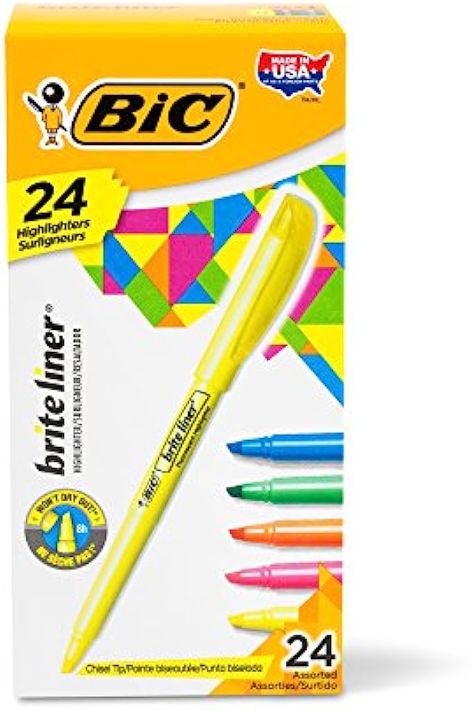 BIC Brite Liner Highlighter, Chisel Tip, Assorted Colors, 24-Count, Chisel Tip for Broad Highlighting or Fine Underlining