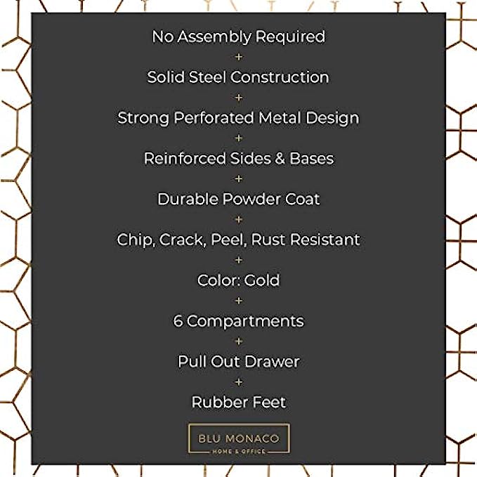 • LOTS OF STORAGE: This gold office organizer has eight compartments and one pull out drawer for all your office supplies. When it comes to gold desk accessories for women office, this organizer has you covered.