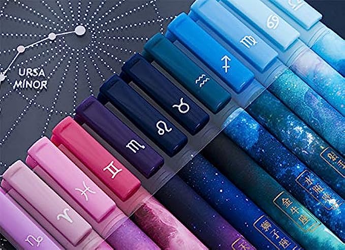 Giant star 12 pcs Constellation Gel Ink Pens, Creative Galaxy Pens, 0.5mm Extra-Fine Ballpoint Pen, Promotional Gift Stationery School Office Supply (Black Ink)