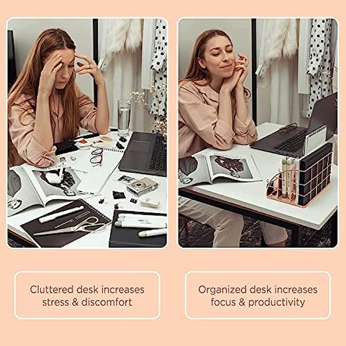 • ? DE-CLUTTER YOUR DESKTOP: Finally, the perfect place to house all those scattered office supplies. Gain easy access to daily essentials while keeping a tidy desktop. A clutter-free desk means a clutter-free mind, ready to handle any important task