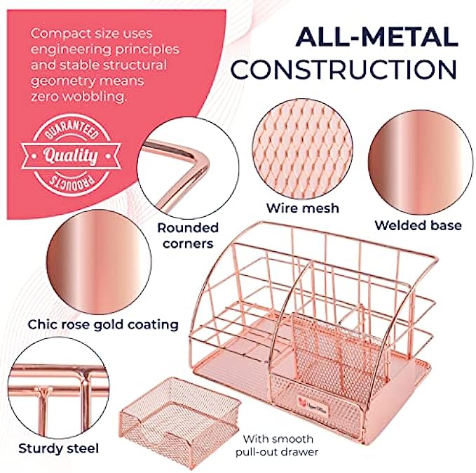 • ? GREAT GIFT FOR ALL: Enduring steel design is built to last through the years of schooling and well into your chosen career. Our rose gold office decor for women desk is a great gift for students, teachers, freelancers who value organization & style