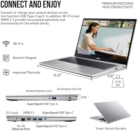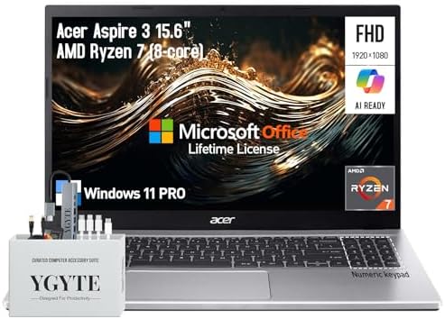Aspire 3 15.6 Laptop Computer, 15 Inch FHD College Students Business Laptop PC, AMD Ryzen 7, 32GB RAM 1TB SSD+512GB Docking Set, Windows 11 Pro Lifetime Office,Ethernet Port,10-Key
