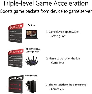 ROG Rapture GT-AX11000 Pro Tri-Band WiFi 6 Extendable Gaming Router, 10G & 2.5G Ports, ASUS RangeBoost Plus, Triple-level Game Acceleration, Subscription-free Network Security, AiMesh Compatible