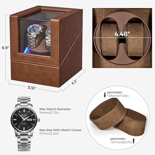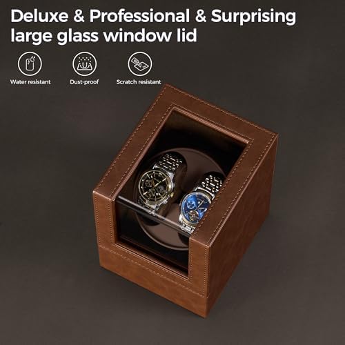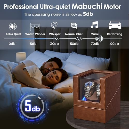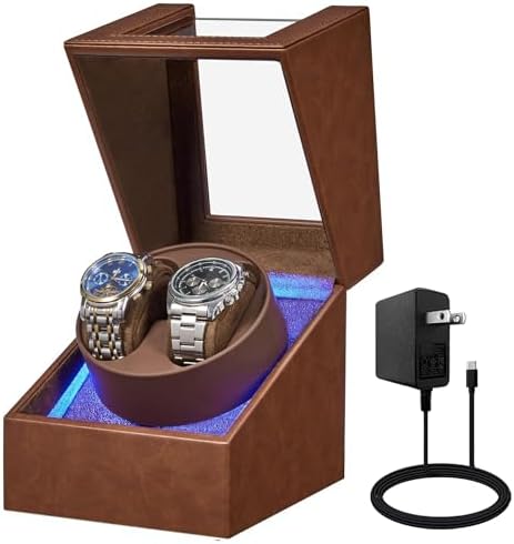 BEWISHOME Watch Winder for Automatic Watches, Double Watch Widner with Led Light 4 Modes, Automatic Watch Winder Box Watch Spinner with Japanese Quiet Motor Type-C Adapter or Battery Powered, SYQ02Z