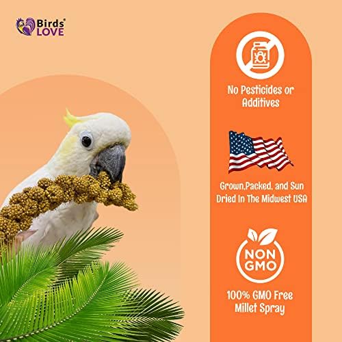 Birds LOVE Spray Millet – 1 lb GMO-Free, No Stems (Edible Tops Only) – Healthy Treat for Cockatiels, Lovebirds, Parakeets, Finches & Canaries