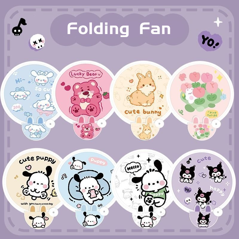 Cartoon Folding Group Fan Kuromi Melody Foldable Student Handheld Cute Mini Portable Round Fan School