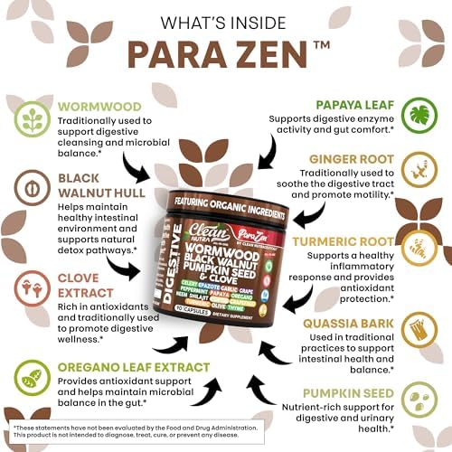Sponsored Ad - Clean Nutra Wormwood Black Walnut Pumpkin Seed Clove Oil Celery Garlic Grape Papaya Neem Diatomaceous Earth Womens Probiotic Gut Health Cleanse Detox Oregano Olive Turmeric Supplement V