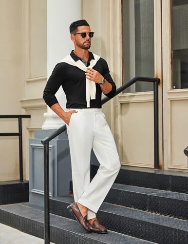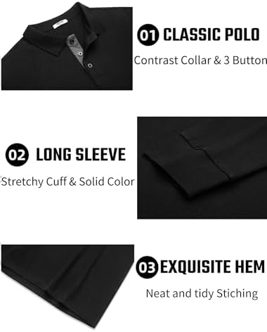 Mens Long Sleeve Polo Shirts Cotton Collared Shirts Casual Business Polo Classic Golf T Shirts