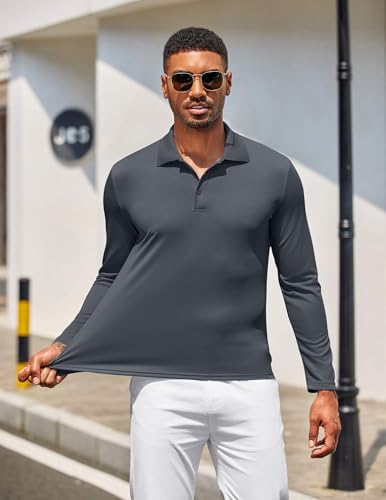 Men's Polo Shirt Long Sleeve Moisture Wicking Golf Shirts Sun Protection Collared Work Shirts
