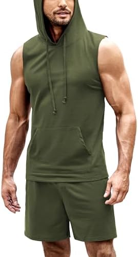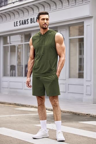 Sponsored Ad - Mens Sleeveless Workout Hoodie Shorts Set 2 Piece Outfits Hooded Tank Tops Gym Tracksuit Sweatsuits