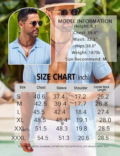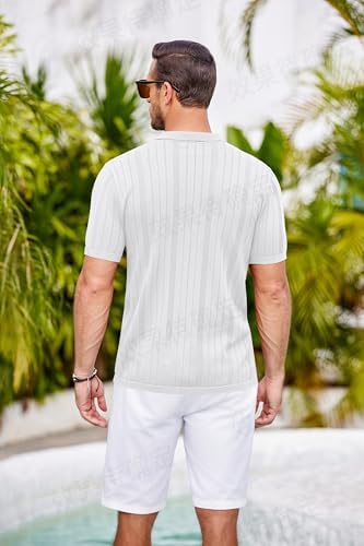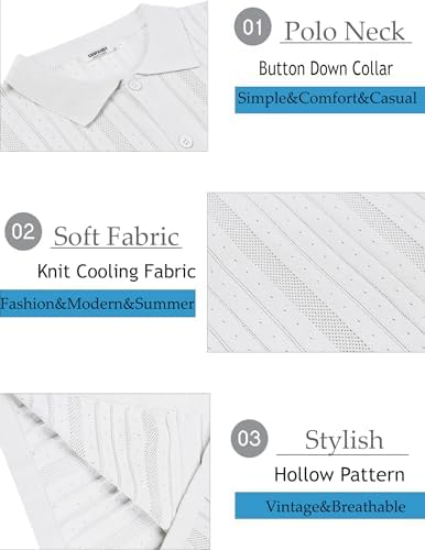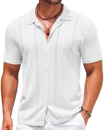 Mens Knit Button Down Shirts Crochet Polo Shirts Vintage Short Sleeve Textured Shirts Summer Beach Tops