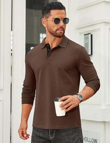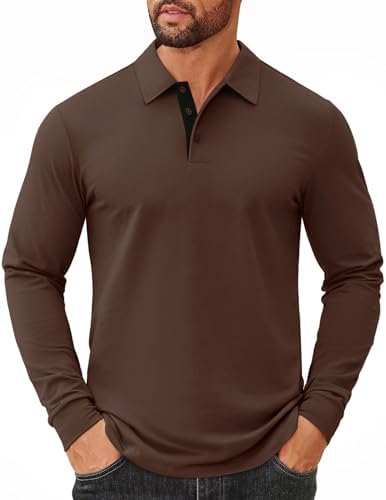 Sponsored Ad - Mens Long Sleeve Polo Shirts Cotton Collared Shirts Casual Business Polo Classic Golf T Shirts