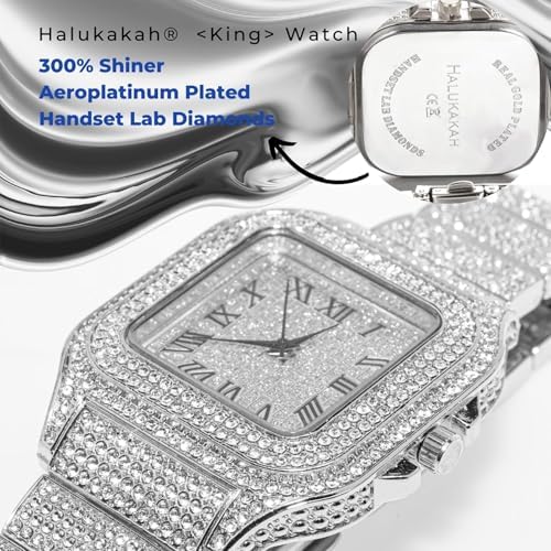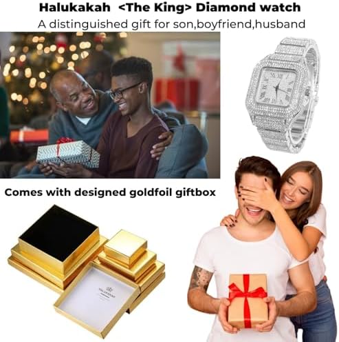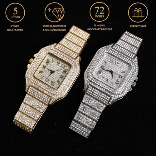 Men's Watch - The King - 18K Gold/Platinum Plated, 40MM Square Dial, Diamonds Iced Out Wristband, Optional with Cuban Link Chain Necklace or Bracelet, Comes in Giftbox, for Boyfriend Husband