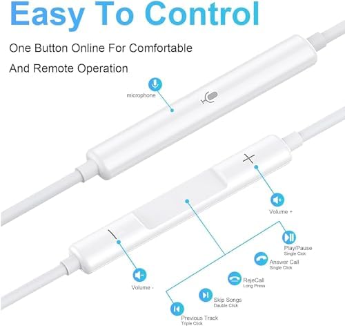 USB C Headphones Wired for iPhone 17/16, Type C Earphones with Microphone & Remote Noise Cancelling Earbuds for iPhone 16/15 Pro Max, iPad, Galaxy S23/S22/S21/S20/Ultra Note 10/20, Pixel 7/6/5/4