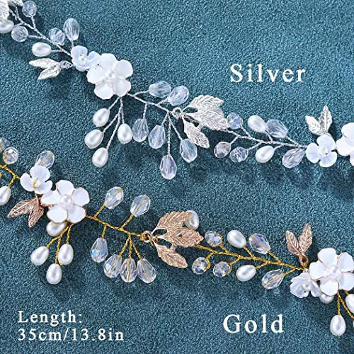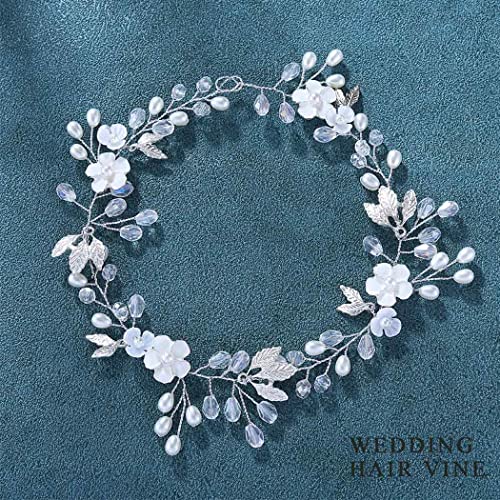 JONKY Bride Pearl Bride Hair Piece Leaf Wedding Headbands Flower Wedding Headpieces Crystal Bridal Hair Accessories for Women (Silver)