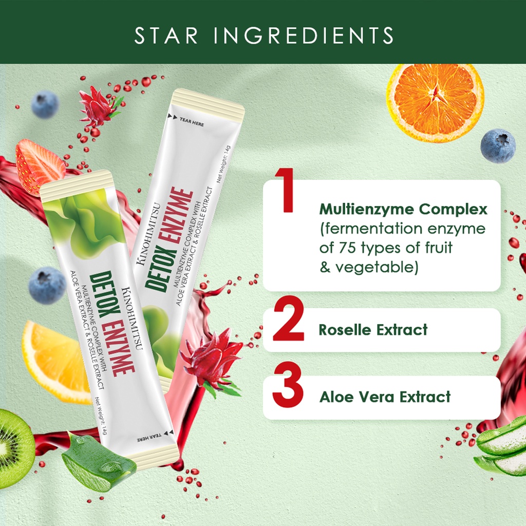 Kinohimitsu Detox Enzyme Plant-Based Supplement Sachet 14g - Constipation Relief, Supports Digestion