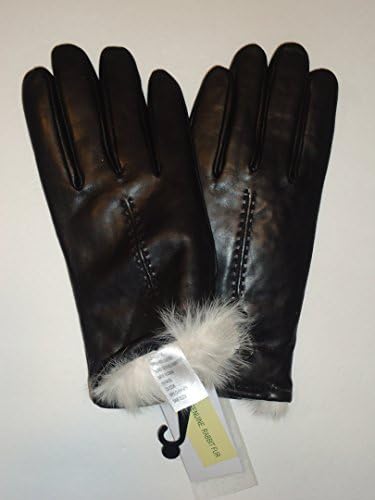 Ladies Rabbit Fur Lined Genuine Leather Gloves,Black (XL)