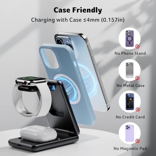 Magnetic Wireless Charger,3 in 1 Wireless Charging Station,15W Fast MagSafe Charger for iPhone 17 16 15 14 13 12 Series-Apple Watch 10 9 8 7 6 5 4 3 2 SE and Ultra Series-Airpods 4 3 2 Pro Series