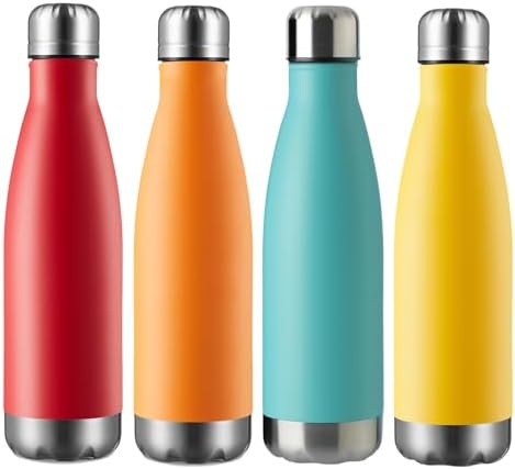 Sponsored Ad - MEWAY 17oz Sport Water Bottle Vacuum Insulated Stainless Steel Leak-Proof Double Wall Cola Shape Water Bottle,Keep Drinks Hot & Cold (4 Pack, MIX)