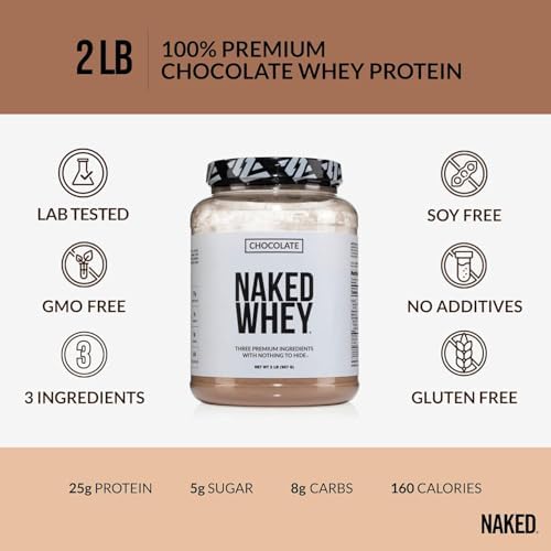 NAKED Whey Chocolate Protein Powder - Only 3 Ingredients - Grass Fed Whey Protein Powder, Organic Chocolate and Organic Coconut Sugar, No GMO, No Soy, and Gluten Free - 24 Servings