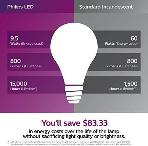 LED 538322 LED Dimmable A19 Soft White Light Bulb with Warm Glow Effect: 800-Lumen, 2700-2200-Kelvin, 9.5-Watt, E26 Base, Frosted, 8-Pack