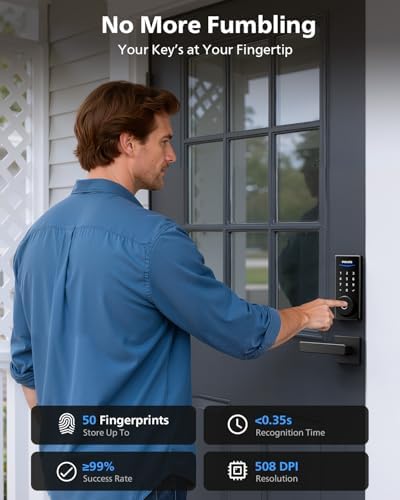 Sponsored Ad - Built-in WiFi Smart Lock + 2 Levels, Smart Locks for Front Door, Digital Keypad Deadbolt with Handle, Fingerprint, PIN Code, App Remote Control & Voice Unlock, Keyless Entry, Auto Locki
