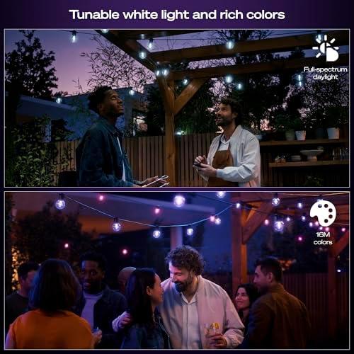 Festavia Globe Outdoor String Lights, White & Color Ambiance, 45ft,16 Bulbs, Dimmable, Control with Hue App or Voice, Bridge Required