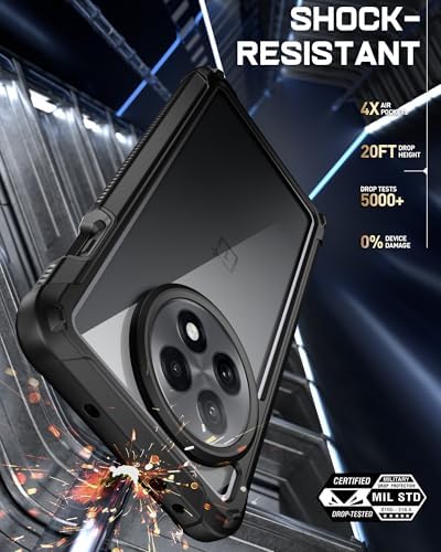 Guardian Case for OnePlus 13R 5G (2025), Built-in Screen Protector [Work with Fingerprint ID], [2 Front Frames] [20FT Mil-Grade Drop Tested] Full Body Shockproof Clear Cover Case, Black/Clear