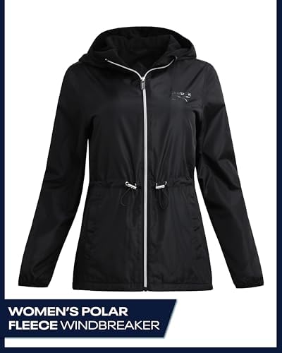 Womens Windbreaker Jacket - Water Resistant Polar Fleece Windbreaker Jacket for Women with Hood & Cinch Waist Toggles