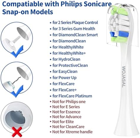 Replacement Toothbrush Brush Heads Compatible with Philips Sonicare Electric Toothbrushes with Click-on System Dupont Bristles for Optimal Plaque Remove, Pack of 10, White