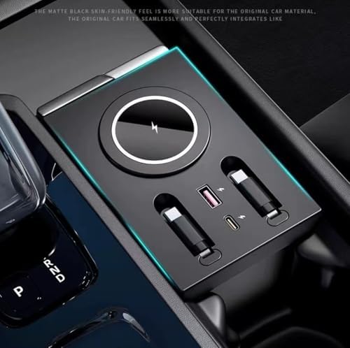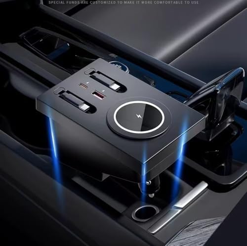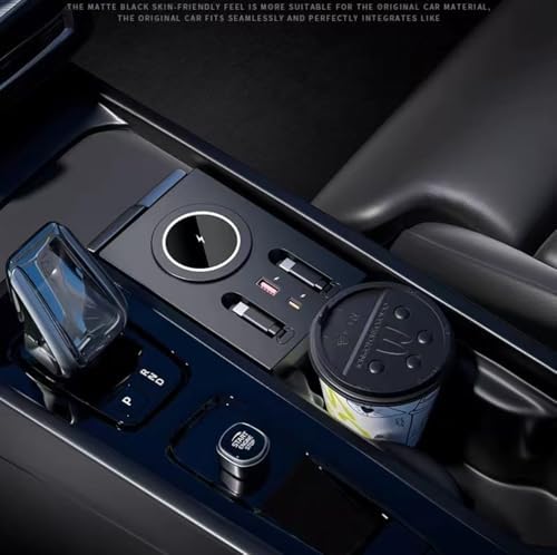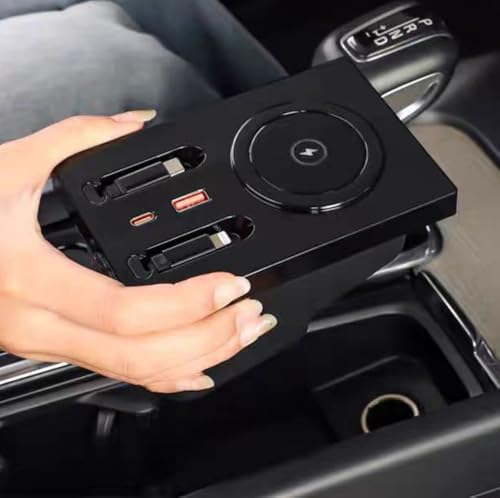 USB Hub Wireless Charger for Volvo xc60 xc90 s90 v90 s60 v60, Retractable Hub Docking Station with Fast Charging Cable Multi Port, Accessories Docking Station of Center Console (tuozhanwu-A)