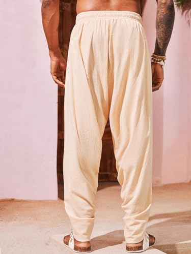 Mens Linen Harem Pants Casual Elastic Waist Pants Baggy Boho Yoga Hippie Summer Beach Kurta Dhoti Trousers