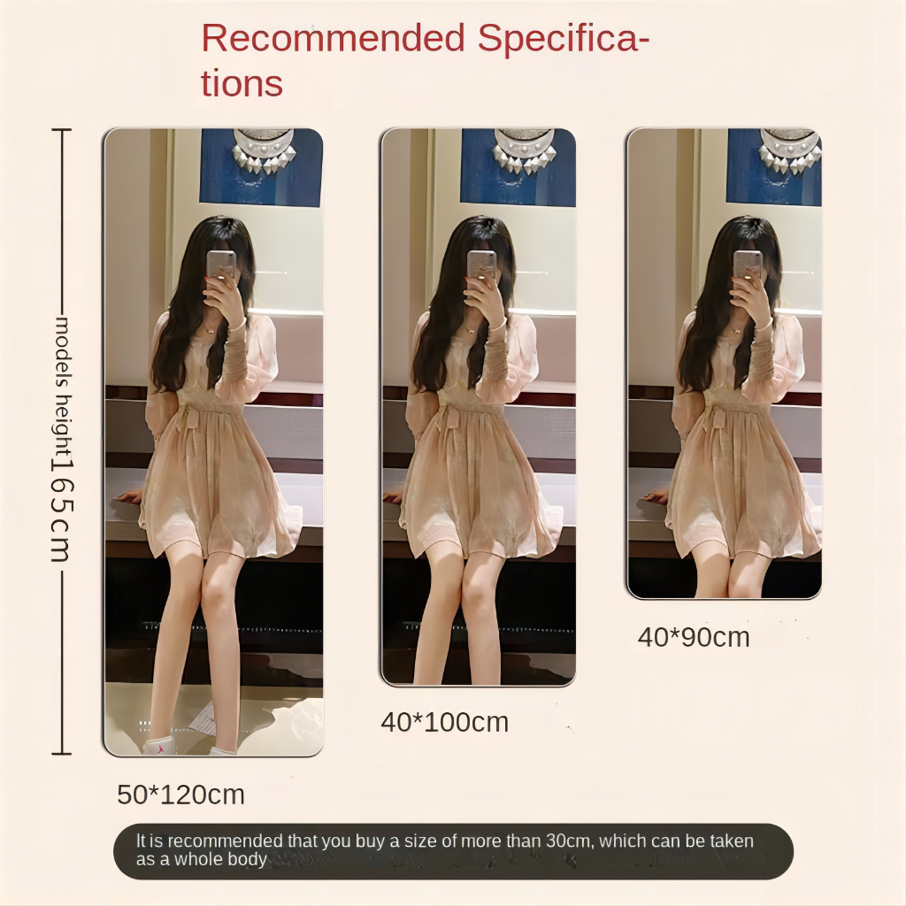 Suitability:Temporary Mirror Appearance:Nice and Brand New Quality:Double Sided Pasting For those who are short in height and sharing with tall person...purchase with the longer height display or paste it lower for those who are not tall. Good packaging and recommended.
