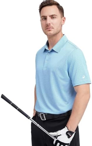 Sponsored Ad - Mens Golf Shirt Moisture Wicking Dry Fit Performance Sport Short Sleeve Striped Golf Polo Shirts for Men