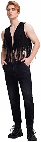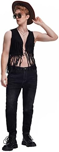Men's Open Front Sleeveless Fringe Hem Party Club Jacket Vest Outerwear