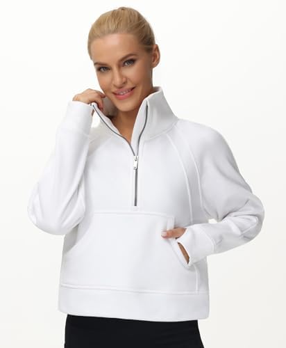 Sponsored Ad - THE GYM PEOPLE Womens' Half Zip Pullover Fleece Stand Collar Crop Sweatshirt with Pockets Thumb Hole