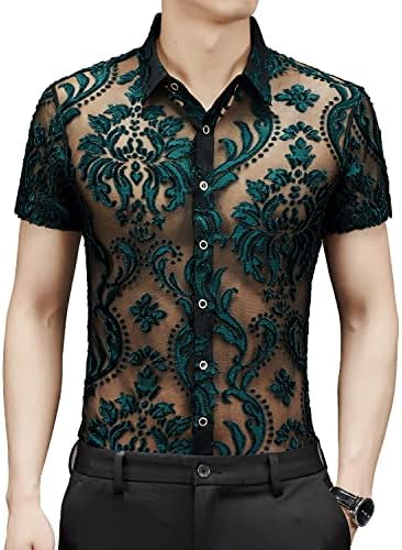 Men Women See Through Shirts Sexy Short Sleeve Night Club Fishnet Lace Shirt